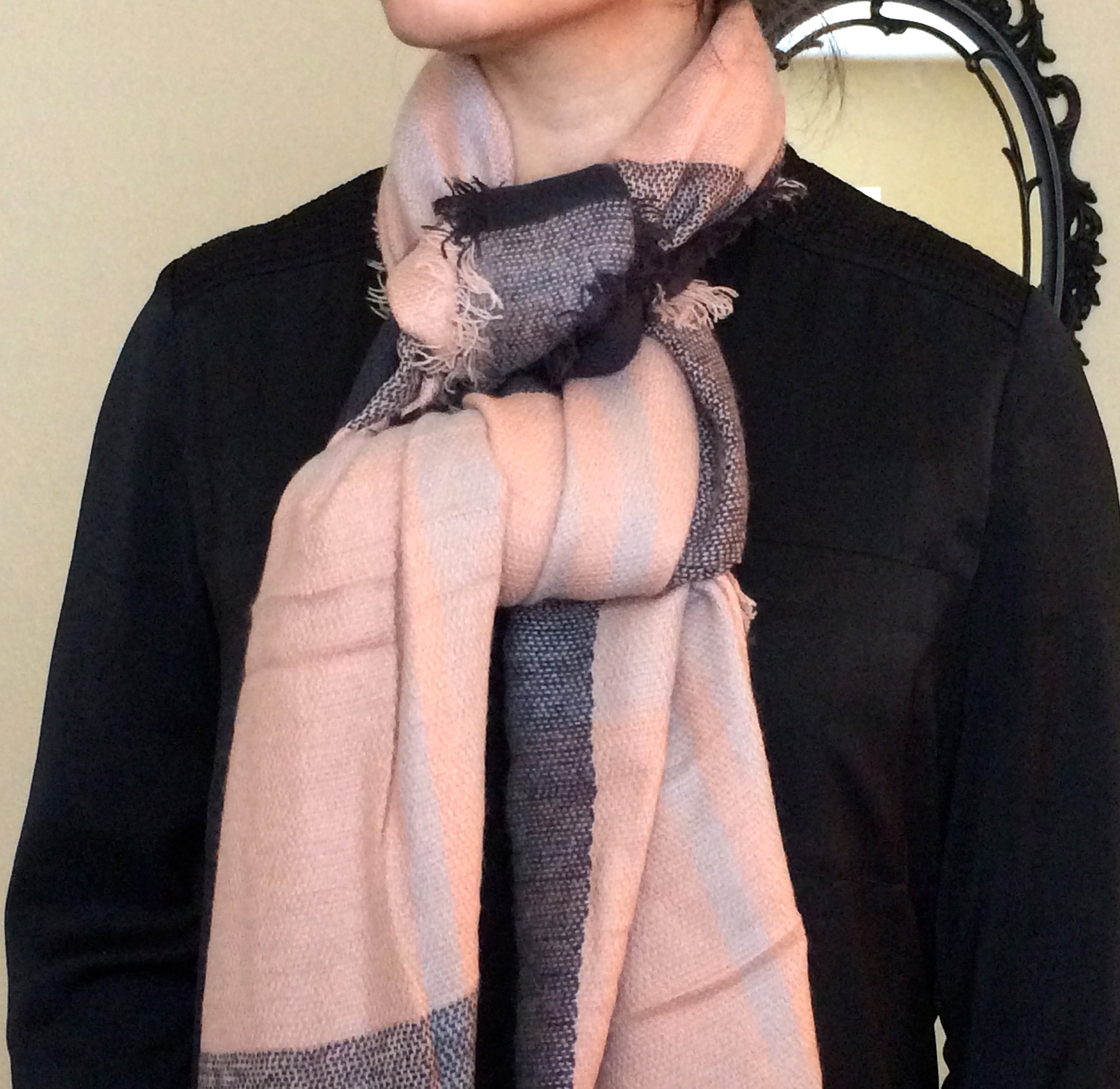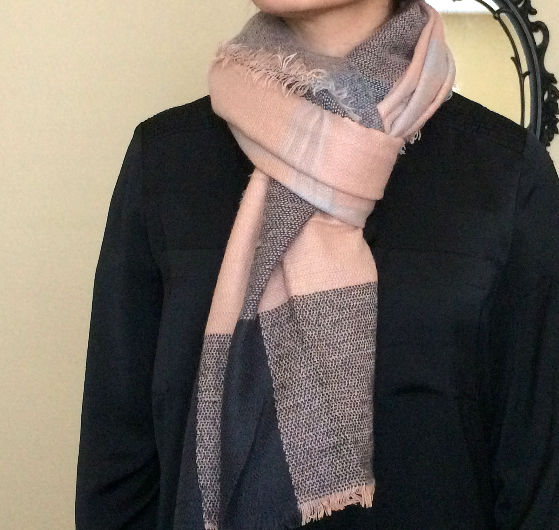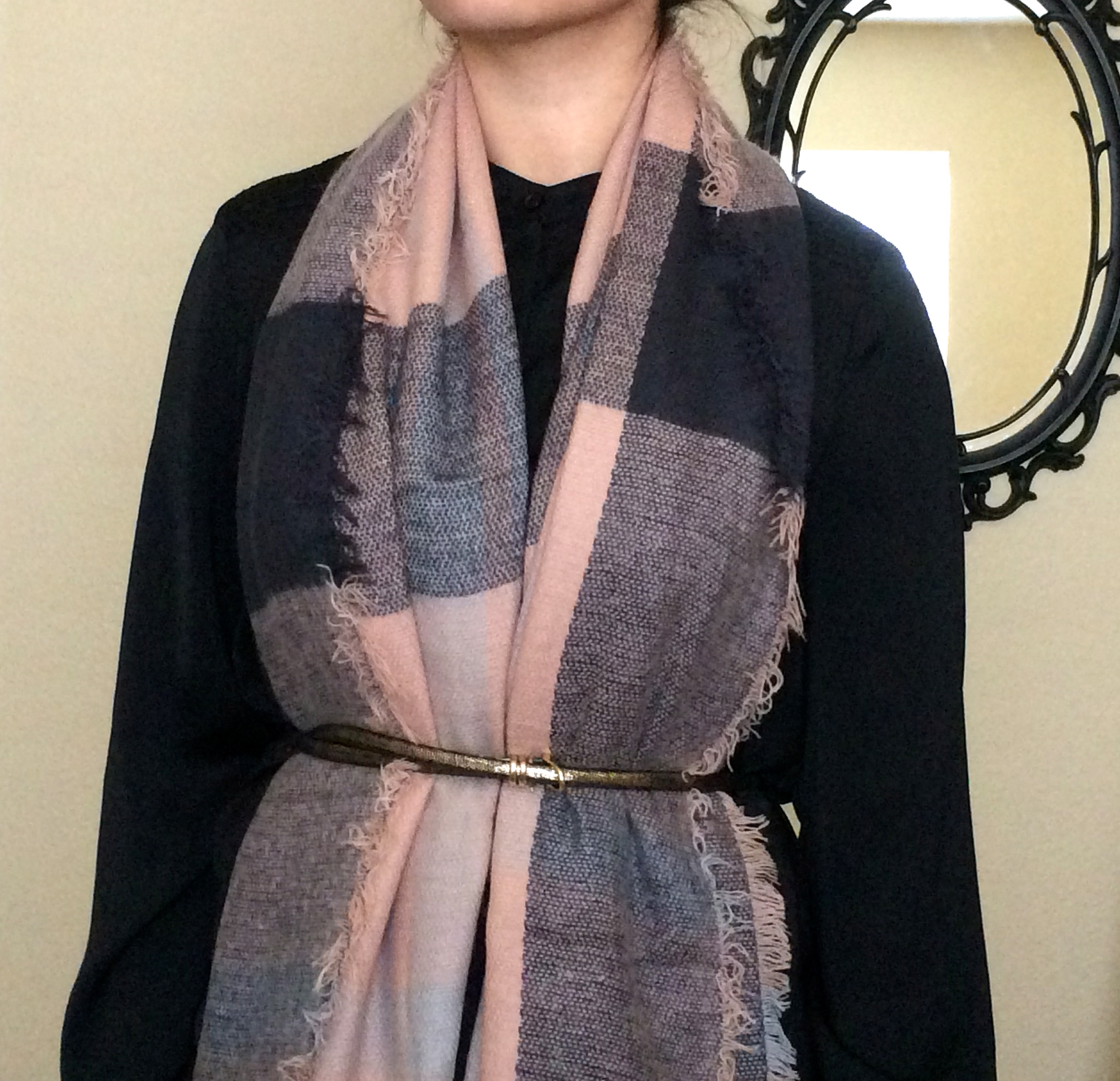 There are all different kinds of blanket scarves. They vary in length, width, thickness, textures, and patterns. I’ve listed below a few of my favorite ways to wear a blanket scarf. Click on each photo for a description. Note that the thicker the blanket scarf, the more limited it will become. The thinner, the more options you will have.